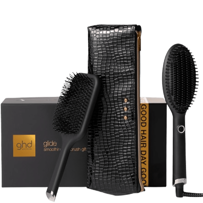 Apportez une touche de glamour à votre quotidien, grâce au coffret cadeau ghd Glide, la brosse lissante ghd. Conçu pour un coiffage sans effort, ce luxueux coffret comprend la brosse chauffante ghd Glide, la brosse plate ghd et une pochette thermorésistante¹. L’essentiel pour des coiffures lisses facilement et rapidement les matins pressés et pour les retouches.