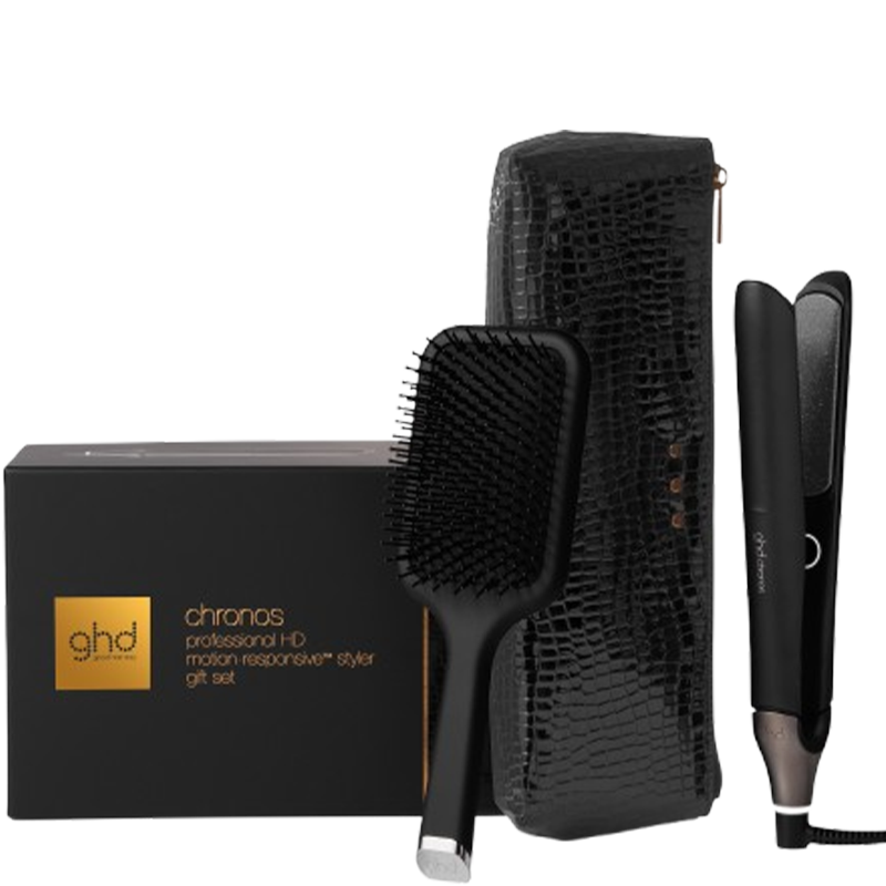 Offrez-vous des coiffures dignes d’un salon de coiffure cette fin d’année grâce au coffret cadeau ghd Chronos. Ce coffret lisseur deviendra sans nul doute votre meilleur allié pour une coiffure glamour et un coiffage impeccable sans effort. Ce coffret rassemble notre dernière innovation en matière de lisseur, ghd Chronos, la brosse plate ghd et une pochette thermorésistante¹.