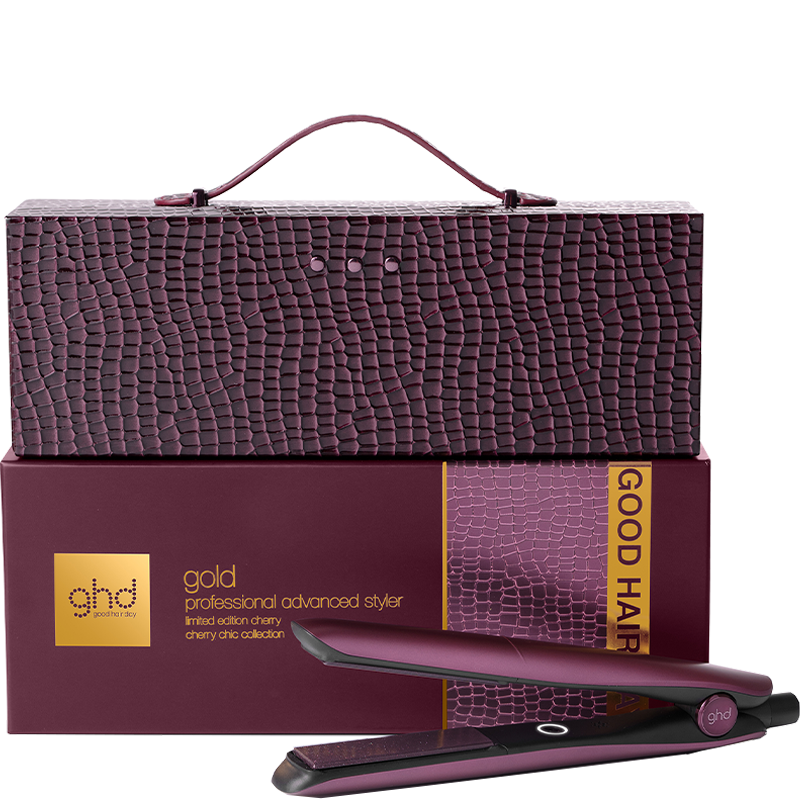 Immergez-vous dans l’univers glamour et festif de la collection ghd cherry chic, une édition limitée habillée d’un irrésistible bordeaux profond. Que ce soit pour un look festif ou pour sublimer votre beauté au quotidien, le lisseur professionnel avancé ghd Gold est conçu pour faire de chaque moment de coiffage un plaisir. Laissez-vous séduire par son luxueux vanity de rangement¹.