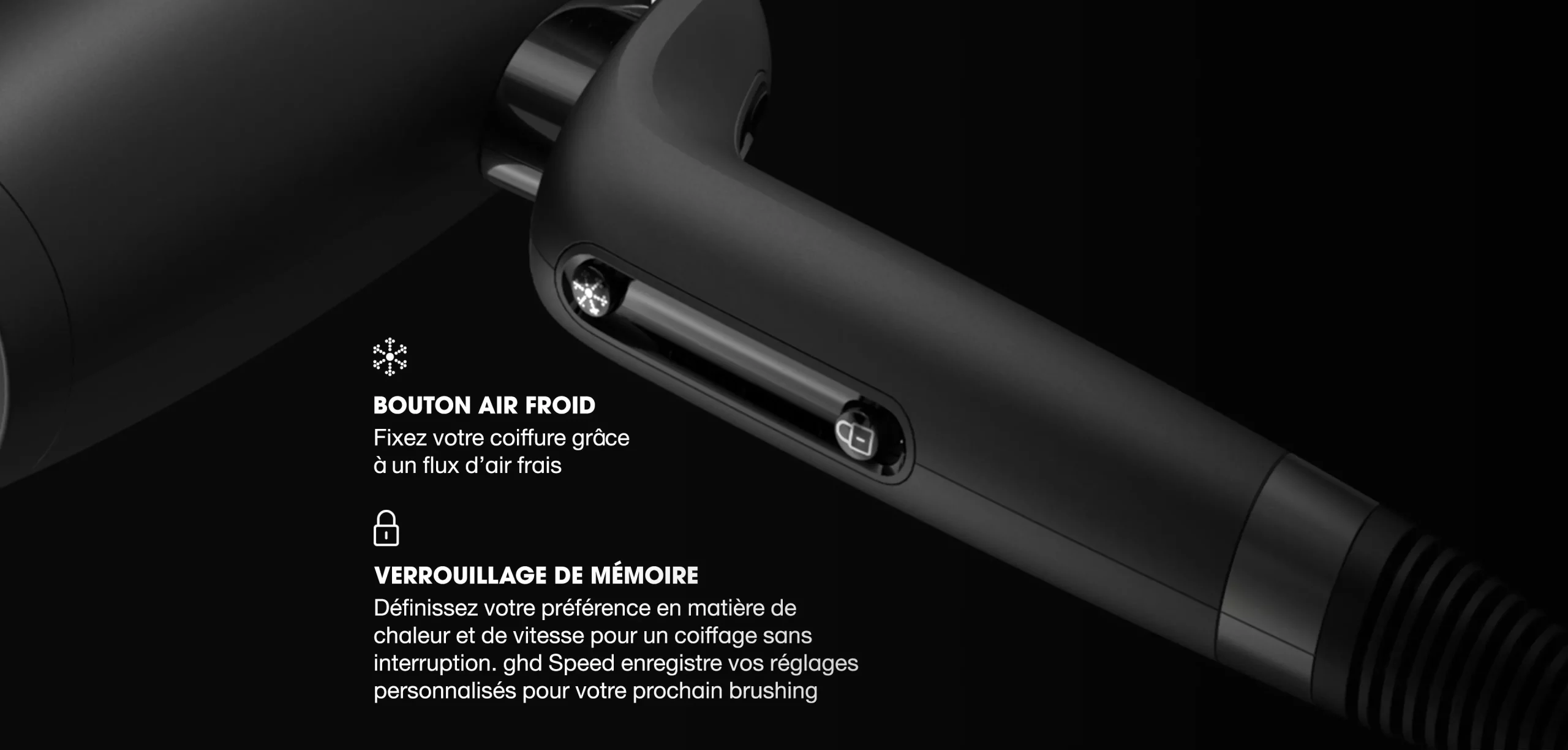 Aujourd’hui, près de trois quarts des femmes déclarent vouloir réduire leur temps de séchage : ghd répond à cette attente avec son sèche-cheveux le plus rapide à ce jour, conçu pour accélérer la routine beauté tout en conservant un résultat professionnel, même les matins les plus pressés.
