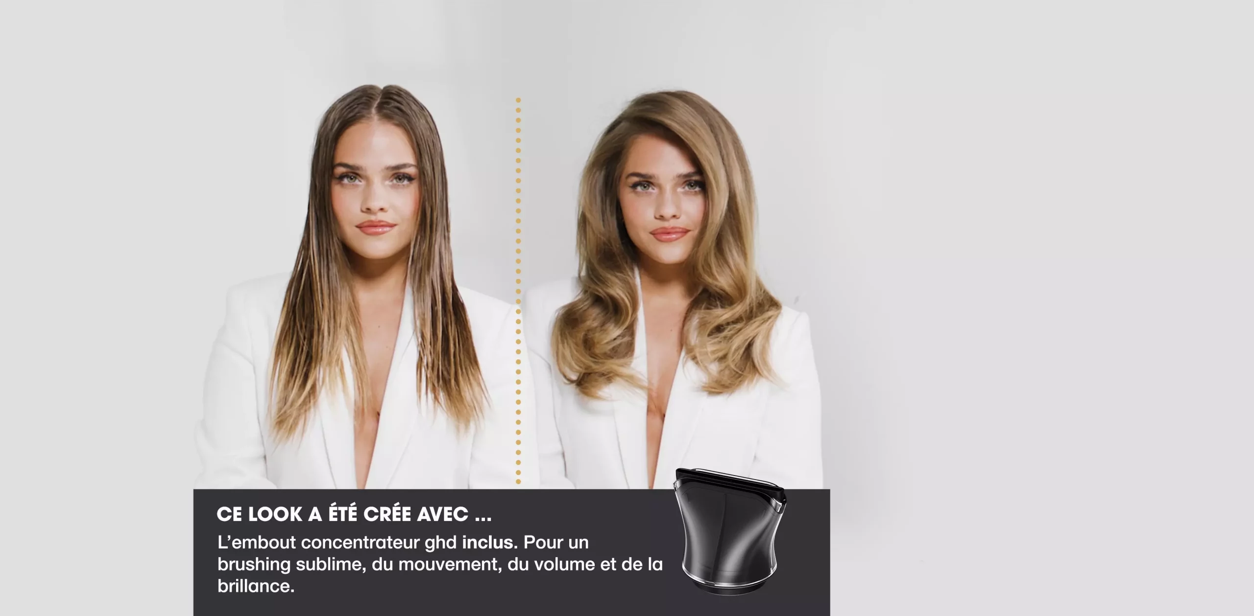 Tous les embouts intègrent la technologie ghd halo™, qui canalise séparément l’air chaud et l’air froid pour un séchage précis, maîtrisé et respectueux de la fibre capillaire. Leur fixation magnétique permet de les positionner ou de les changer rapidement et en toute sécurité pendant le séchage, pour une expérience fluide et confortable.