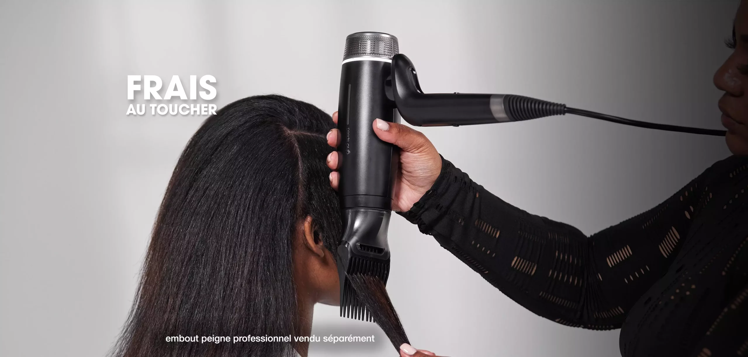 Cette exclusivité technologique permet de réduire la température à la surface des cheveux jusqu’à 20°C, tout en conservant une puissance de séchage élevée. Résultat : un brushing rapide, précis et maîtrisé, sans dommage thermique¹. Le cuir chevelu reste frais, la fibre est respectée et la prise en main de l’appareil demeure froide.