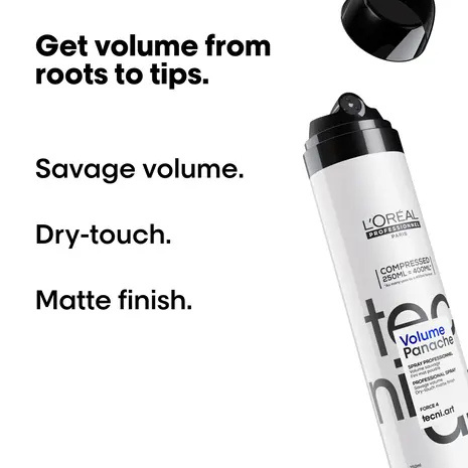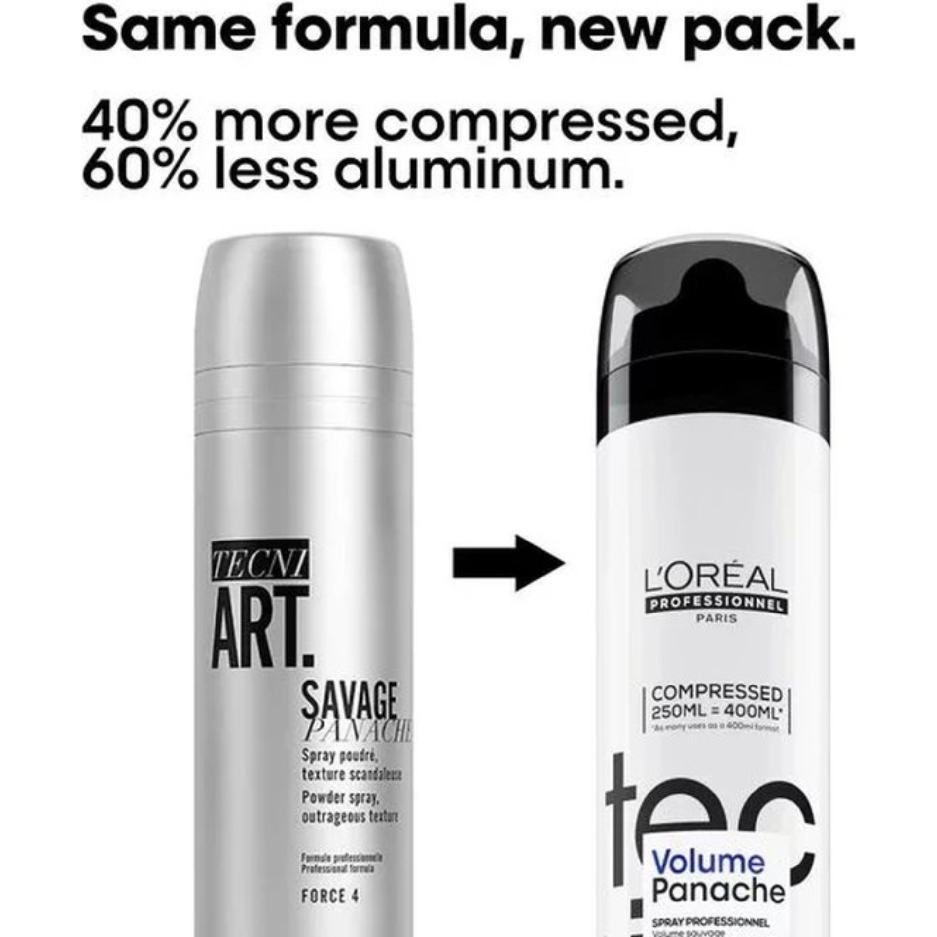 Le spray cheveux poudre savage panache l’Oréal Professionnel Tecni.Art confère un fini mat à l’aspect impeccable sans laisser de dépôts poudreux. Ce soin cheveux permet d’obtenir aisément un effet ébouriffé et texturé et peut être utilisé pour créer du volume dans les cheveux longs, des coiffures hautes sécurisées ou encore une texture sauvage.