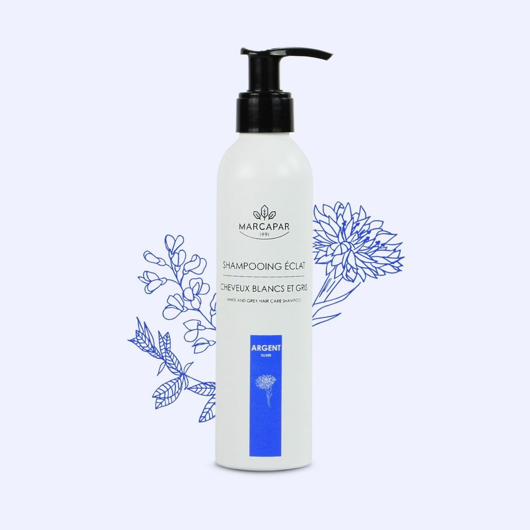 Le Shampooing Argent est formulé à partir d’une base lavante d’origine végétale ultra-douce. Il est enrichi en Pastel des Teinturiers et en Bleuet. La synergie de ces deux plantes neutralise les reflets jaunes et sublime les cheveux naturels blancs et blonds.